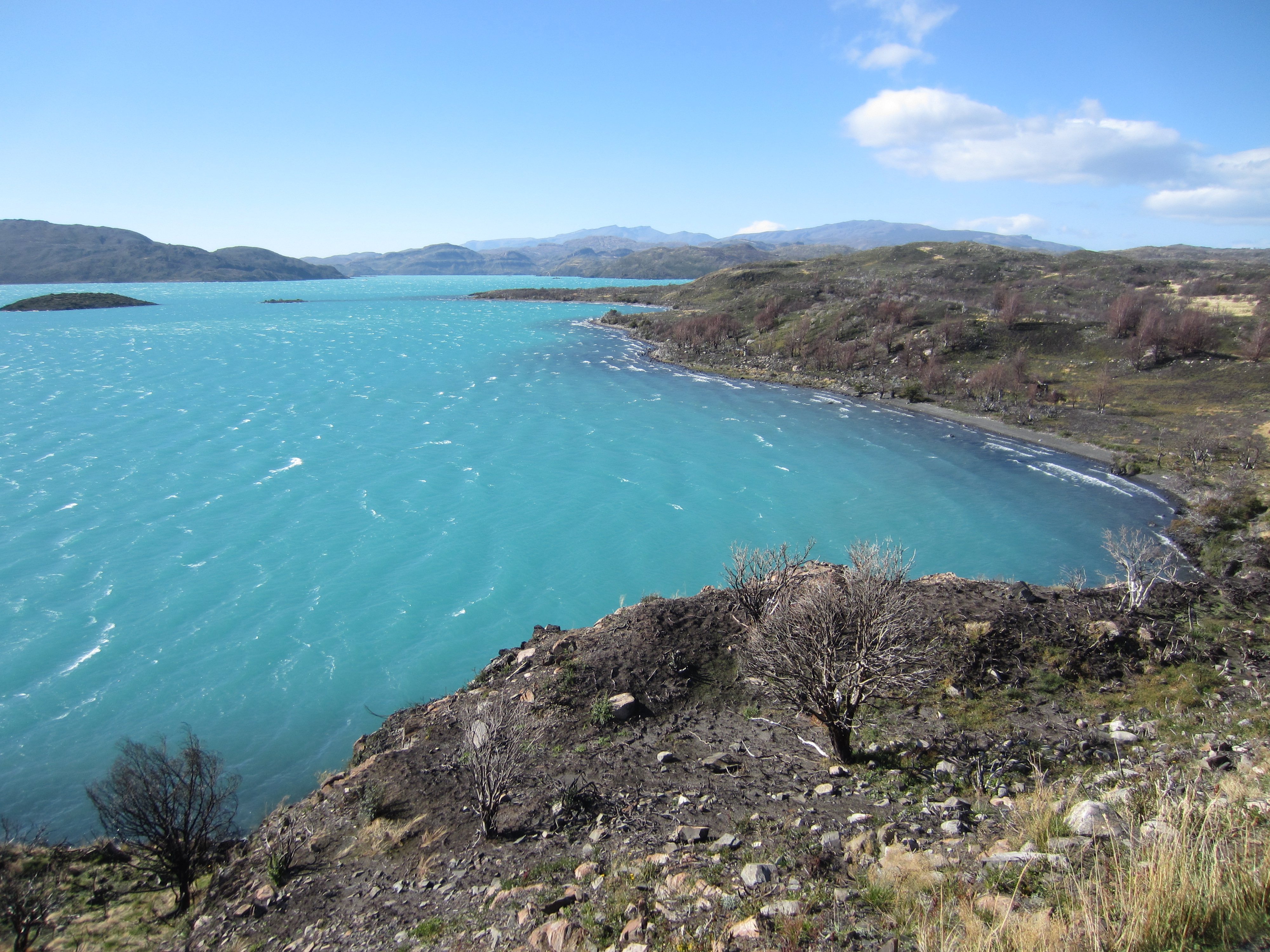 So we were en route, and going at a decent pace, Bryan in tow by this point, and we hit the first real evidence of The Patagonian Winds. We were sideways up a mountain, the wind was going schiz, still looking at the (now unknown) Lago next to us, and forcing ourselves into the hillside in order to not be blown off. We were heading for Serron (I think), and also, on this day, met The American Couple (later known as The Annoying American Couple in order to differentiate, before the other ones became known as either the Nice American Couple, or simply, Brooklyn), and made some pretty decent time in our hiking.