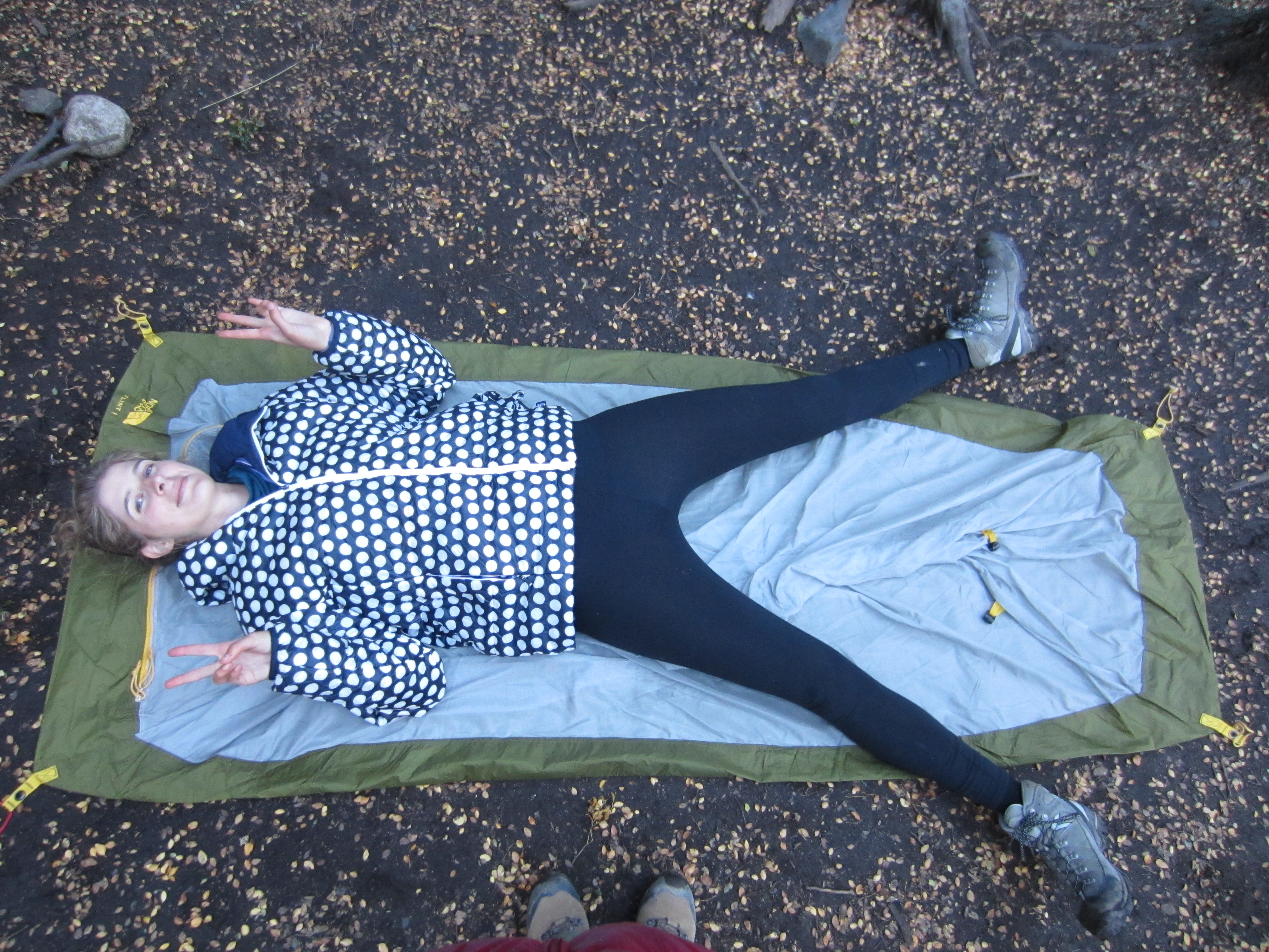 Alejandro was showing off his circus skills to some of the others, his tightrope act between two trees pretty well perfected. Sadly his encouragement wasn’t enough to have any of us manage more than even one step. I could stand still for a microsecond, but that was about it. So bedtime it was, all of us a little nervous about waking to the day of The Pass the next morning.