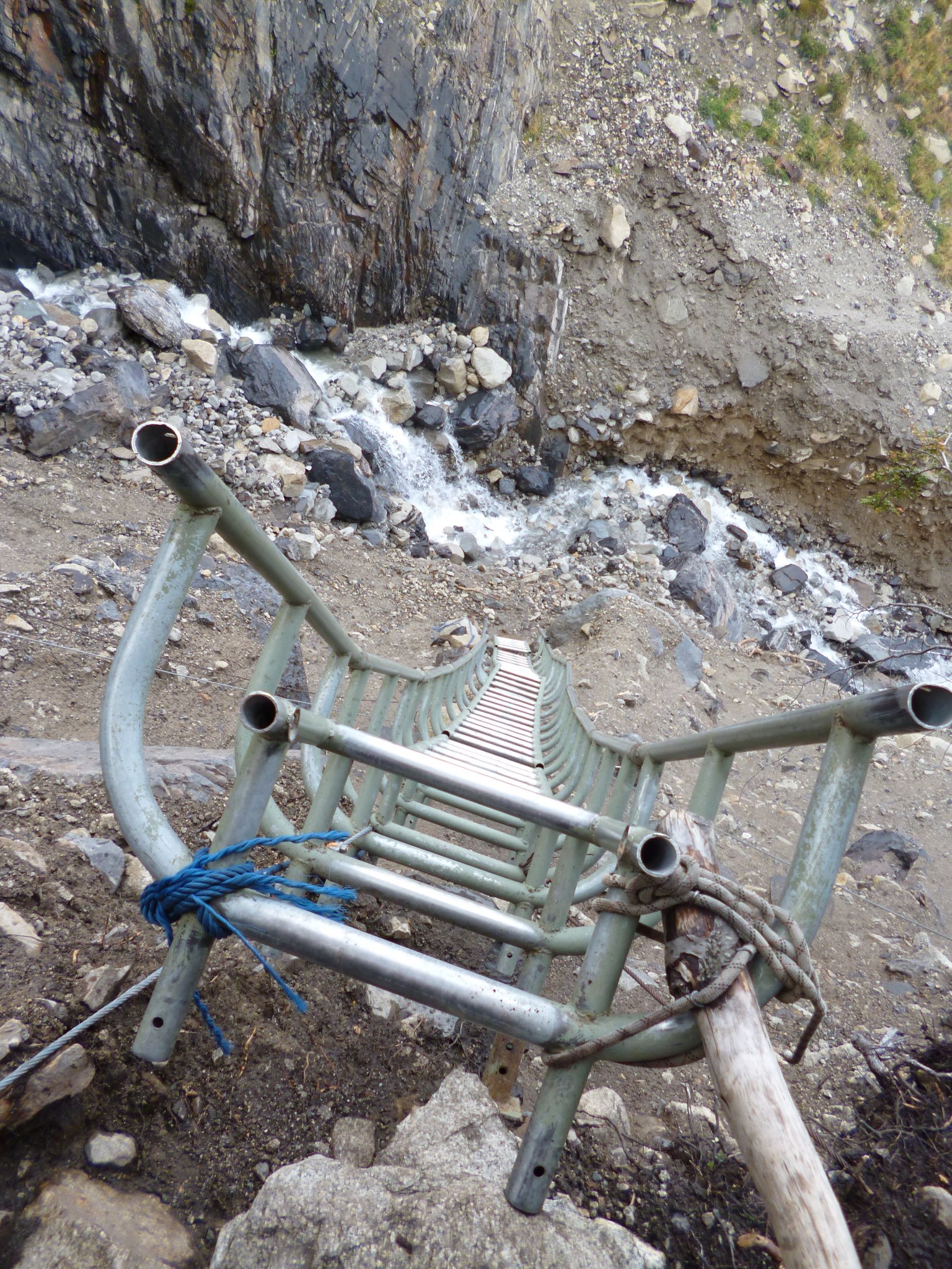We all rounded towards the head of the ladder and looked down at the ravine, 15m or so beneath us.